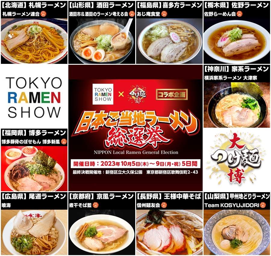 日本ご当地ラーメン総選挙 気になるイベントをシェア Share on X (Twitter) Share on Facebook Share on Email Share on SMS 日程2023年10月5(木)〜9(月・祝)日本ご当地ラーメン総選挙時間11時〜21時会場大久保公園 入場料無料主催日本ご当地ラーメン総選挙実行委員会 公式サイト詳細は公式サイトを御覧ください。※イベント内容・スケジュールが変更される場合もあります。東京イベント情報東京フェス情報├代々木公園イベント情報├日比谷公園イベント情報├上野公園イベント情報└お台場イベント情報気になるイベントをシェア Share on X (Twitter) Share on Facebook Share on Email Share on SMS