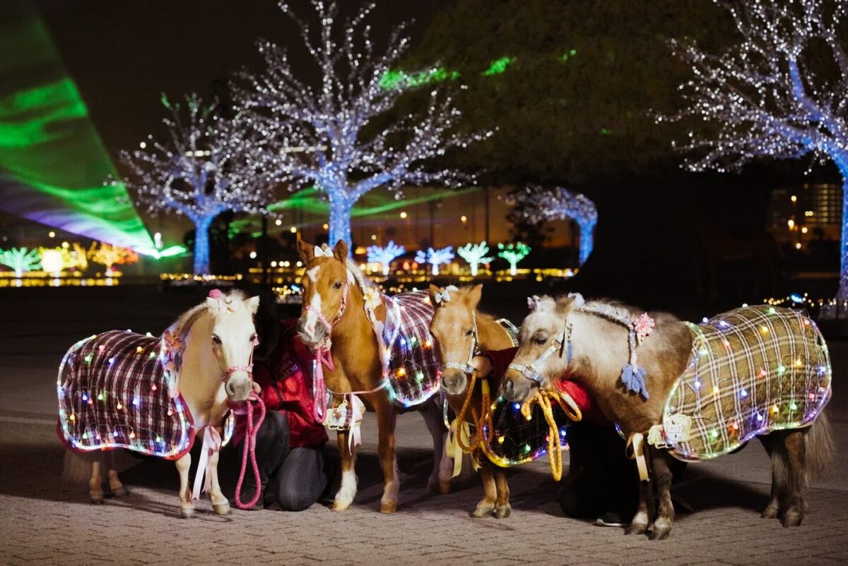 大井競馬場の冬を彩る恒例のイルミネーションイベント「東京メガイルミ」が今年も登場!光と音の演出に加え、ミニチュアホースやポニーとのふれあい体験、噴水×誘導馬のショーなど“馬”ならではのプログラムが充実。RODYとのコラボ企画も実施され、限定メニューやスタンプラリー、グッズ販売など、家族みんなで楽しめる冬の人気スポットです。