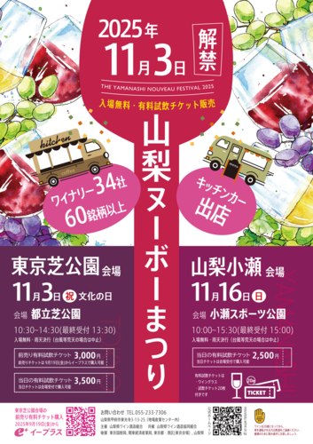 日本が誇るワイン県・山梨から届く新酒ワインの祭典「山梨ヌーボーまつり2025東京会場」が、都立芝公園で開催されます。解禁日となる11月3日には、山梨県内34ワイナリーによる新酒ワイン60銘柄以上が勢ぞろい。フレッシュでフルーティーな香りに包まれながら、今年できたての山梨ヌーボーを一足先に味わえる貴重なチャンスです。秋の青空の下、芝公園でワイン片手に山梨の魅力を堪能してみませんか?