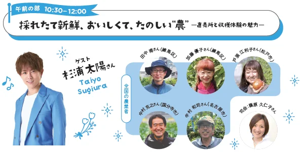 テーマは「買う・食べる・体験する・話す・学ぶ」。家族で楽しめるワークショップやトークライブ、農業体験など、都会にいながら“農”の魅力を五感で感じられる内容が盛りだくさん。